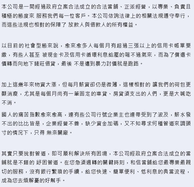 在選擇資金週轉管道時,合法性是需要特別注意的一點。若不慎找上來源不明的借貸機構,不僅容易陷入合約糾紛,甚至可能面臨暴力討債等高風險情況。三峽和信合法當舖,主打政府立案、合法經營,深受鶯歌、樹林地區的民眾推薦。不管是典當設備、汽車融資、支票週轉,或是短期急用現金,和信合法當舖都能依需求提供合規透明的方案,並嚴格遵守利率上限與計息規定,確保借貸過程安全無虞。